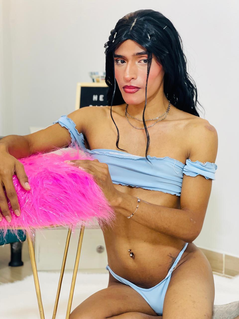 una mujer trans morena, delicada y sensual que quiere compartir contigo lo dulce de una conversación y la sensación un beso con amor, estoy segura que estarás feliz de conocerme y poder estar con migo en esta sala de diversión